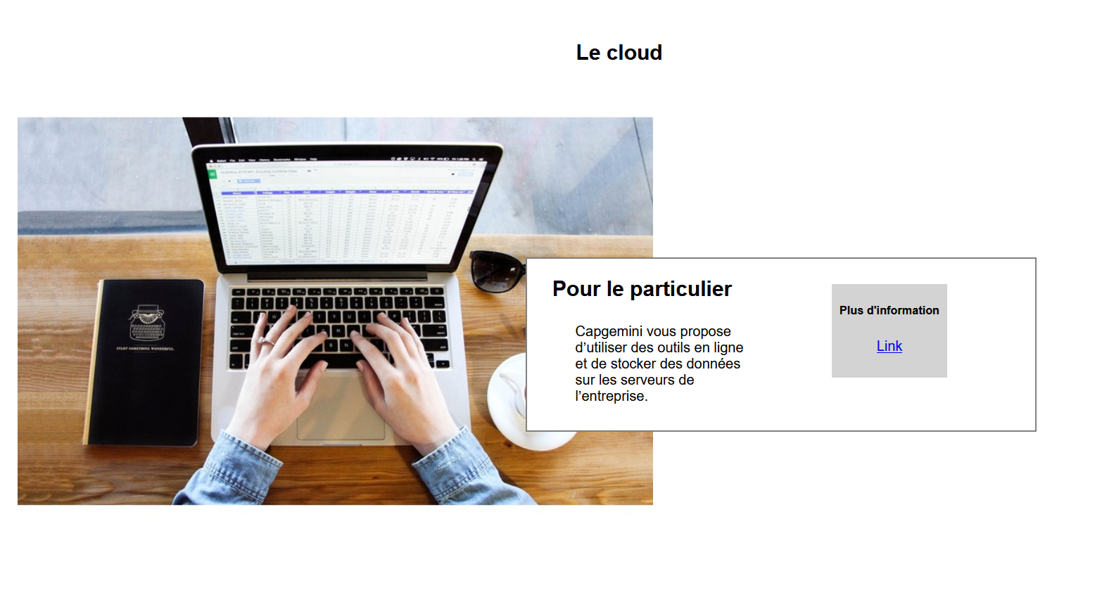 D'abord une grande page d'accueil présentant les valeurs les plus importantes de l’entreprise puis présente les autres pages avec des liens vers eux